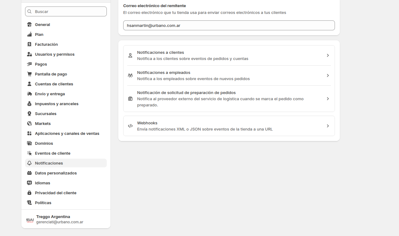 Ruta: Configuración → Notificaciones → Webhooks
