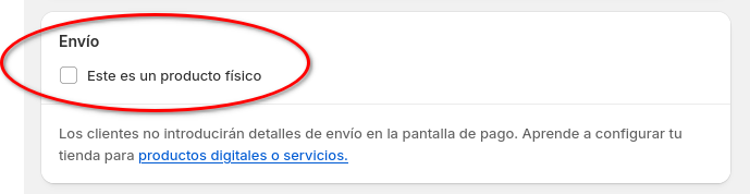 setear la opción que indica que el producto es físico. Los productos digitales NO impactarán en nuestro