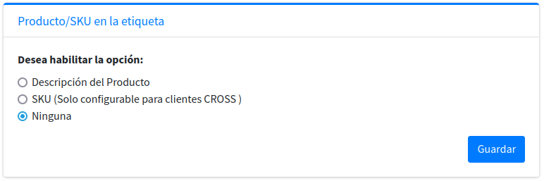 En "Descripcion del Producto/SKU en la Etiqueta" podremos elegir si se desea mostrar:
