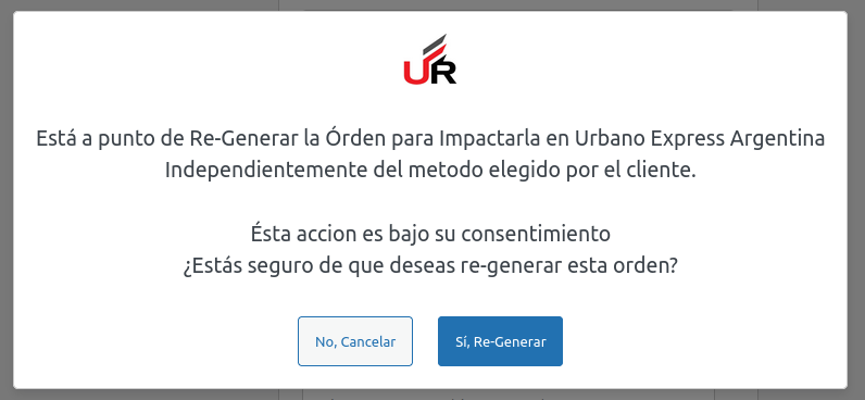 Al Re-Generar la orden el plugin pedirá la confirmación de la misma por medio de un modal.