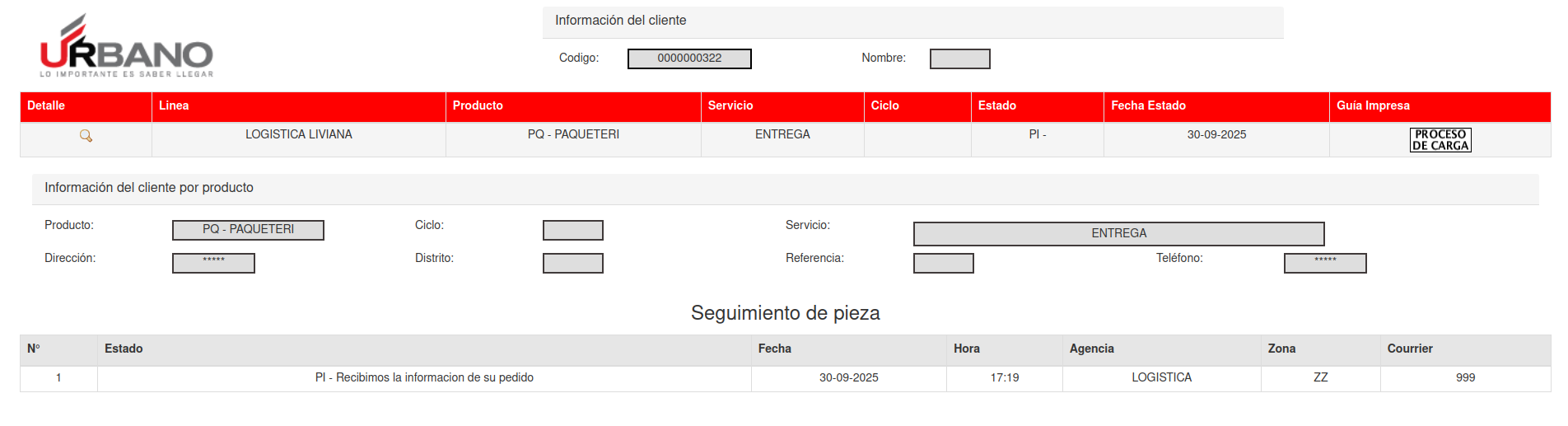Luego de Impactar las órdenes seleccionadas veremos una columna con el nombre de Urbano, si aparece el número de seguimiento, quiere decir que la orden se a enviado a Urbano Express, de esta forma ya no se podrá modificar mas los bultos, además podemos visualizar el movimiento haciendo click sobre el mismo enlace.