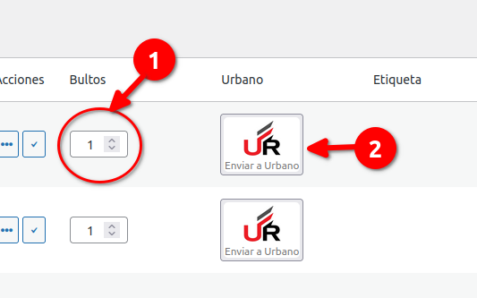Antes de enviar una orden a Urbano deberemos setear primero la cantidad de bultos, y luego hacer click en "Enviar a Urbano". Recuerde que una vez impactada una orden no podrá modificarse.