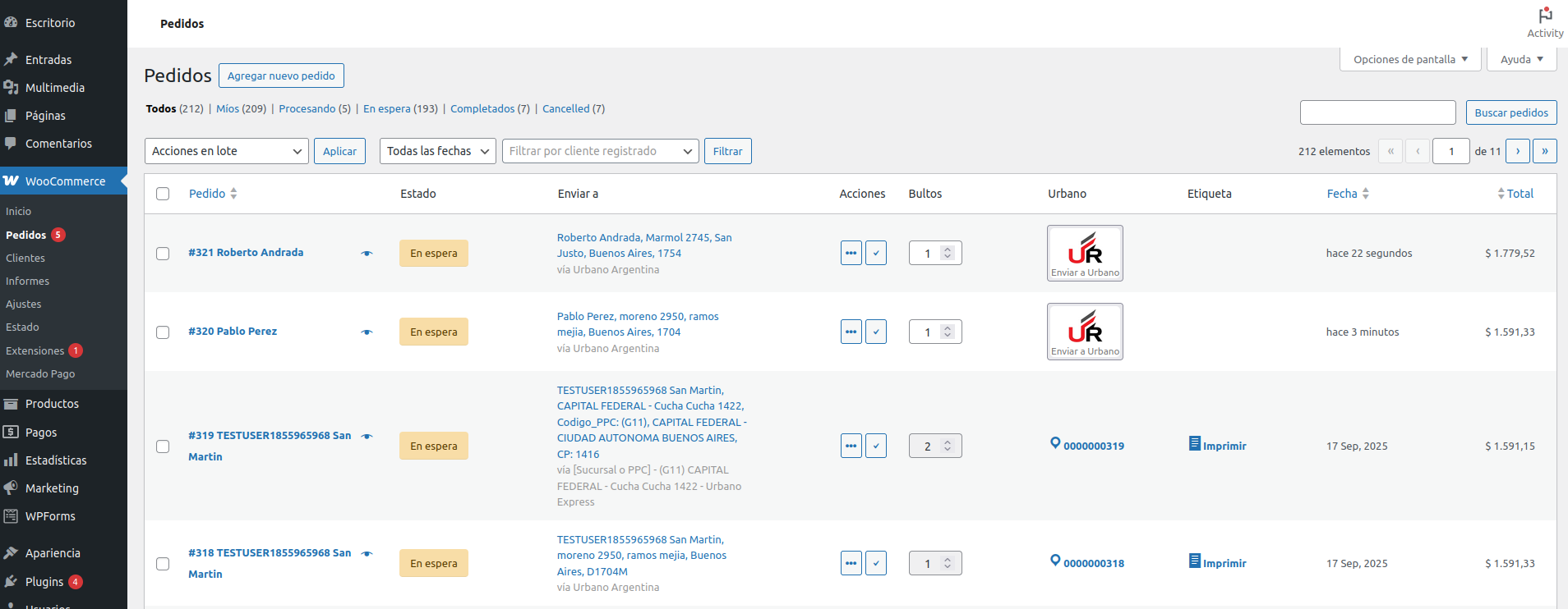 Configuración en producción: Con estas credenciales, podrá replicar la configuración exitosa del ambiente de testing en su entorno de producción, habilitando la integración real con Urbano Express Argentina.